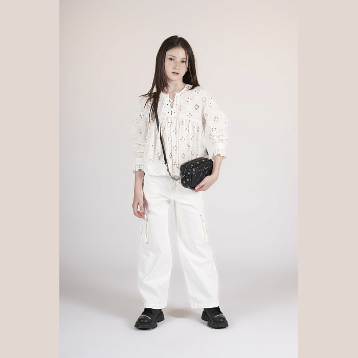 Белые джинсы John Richmond – это идеальный выбор для девочек! Изготовленные из 99% хлопка и 1% эластана, они обеспечивают отличный комфорт и стиль. На фотографиях видны эластичные резинки на поясе, карманы с нашивками и удобные карманы сзади. Белый цвет подчеркивает элегантность и универсальность этих джинсов. Стильная деталь – черная сумка на плечо, которая идеально сочетается с белыми джинсами. Джинсы подходят для девочек от 8 до 14 лет, обеспечивая комфорт и стиль в любых условиях.