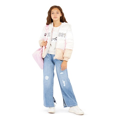 Джинсы Guess – это стильный и комфортный выбор для девочек 14 лет! Изготовленные из 100% хлопка, они украшены эффектом потертости и дырками, что придает им уникальный и модный вид. На передней части видны две карманы с эффектом потертости, а на задней – большой карман с логотипом Guess. Нежный синий цвет подчеркивает стиль и индивидуальность вашего ребенка. Джинсы Guess – отличный выбор для девочек, которые ценят комфорт и моду!