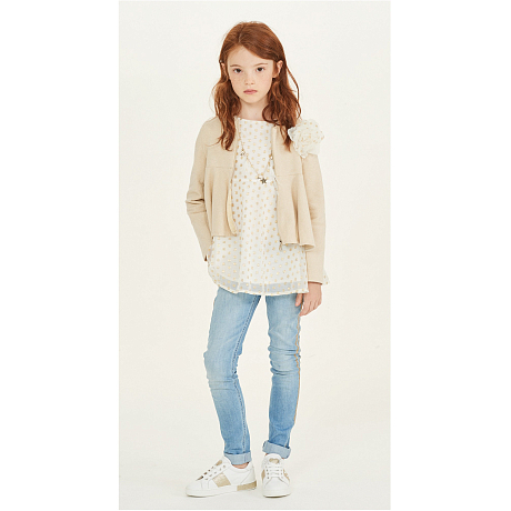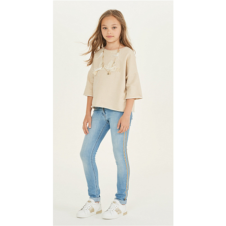 Джинсы Elsy – это идеальный выбор для маленьких модниц! Изготовленные из комбинации 77,3% хлопка, 20,5% полиэстера и 2,2% эластана, они обеспечивают комфорт и эластичность. Джинсы украшены золотыми полосками, которые добавляют модели стиль и шарм. На фотографиях видны аккуратные карманы, застежка на молнию и удобная посадка. Качество от Китая и внимание к деталям делают эти джинсы отличным выбором для вашего ребенка!