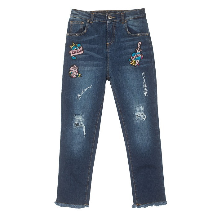 Джинсы для девочек John Richmond с принтами и рваными деталями
