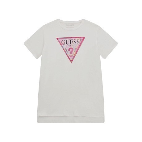 Футболка Guess – это идеальный выбор для девочек от 12 до 16 лет! Изготовленная из 95% хлопка и 5% эластана, она украшена ярким принтом треугольника с надписью Guess. Белая основа с красочным принтом создает стильный и современный образ. На фотографиях видна аккуратная окантовка по краю и мягкая текстура ткани. Качество от бренда из США и внимание к деталям делают эту футболку отличным выбором для вашего подростка!