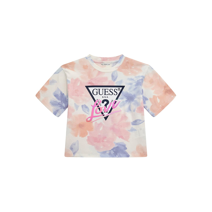 - 🎨 Дизайн: цветочный принт в розовых и голубых тонах, логотип Guess, надпись "Love"