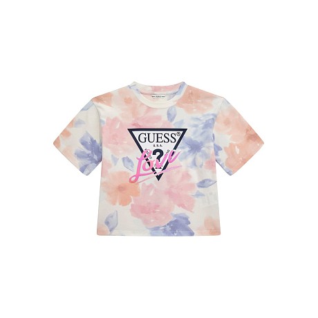 Футболка Guess – это идеальный выбор для девочек! Изготовленная из 95% хлопка и 5% эластана, она украшена нежным цветочным принтом в розовых и голубых тонах. Логотип Guess на передней части и надпись "Love" в центре создают стильный и модный образ. На фотографиях видны аккуратные цветочные узоры, мягкая текстура ткани и удобная посадка. Качество от американского бренда Guess делает эту футболку отличным выбором для вашего ребенка!
