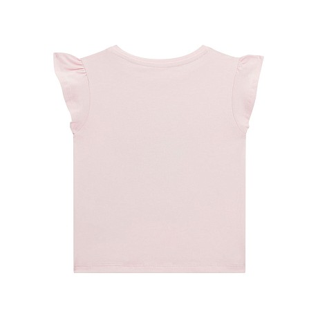 Футболка для девочки Guess – это идеальный выбор для стильных и нежных малышек! Изготовленная из 95% хлопка и 5% эластана, она украшена очаровательным принтом медведя с звездами и очками. Розовый цвет создает нежное и в то же время яркое настроение. На фотографиях видна аккуратная розовая окантовка по краю и мягкая текстура ткани. Качество от бренда из США и внимание к деталям делают эту футболку отличным выбором для вашего ребенка!