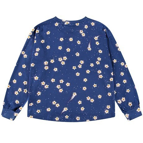 Футболка Molo с длинным рукавом – это идеальный выбор для девочек! Изготовленная из 95% хлопка и 5% эластана, она украшена очаровательным принтом с изображением животных и звезд на синем фоне. Нежная текстура ткани и удобная посадка создают комфорт и уют для вашего ребенка. На фотографиях видна аккуратная окантовка по краю рукавов и мягкое воротничок. Качество от бренда из Дании и внимание к деталям делают эту футболку отличным выбором для вашего малыша!
