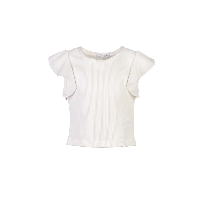 Белая трикотажная блузка для девочек Elsy – это идеальный выбор для стильных и модных девочек! Изготовленная из комбинации вискозы, полиэстера и эластана, она обеспечивает комфорт и свободу движений. Элегантные оборки на рукавах придают блузке нежный и романтичный вид. Бренд Elsy, созданный в Италии, гарантирует высокое качество и стильный дизайн. На фотографиях видны аккуратные оборки на рукавах и мягкая текстура ткани. Блузка идеально подойдет для девочек от 7 до 14 лет!
