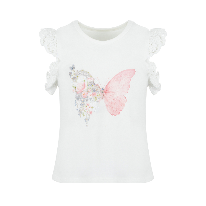 Молочный джемпер для девочек с бабочкой
