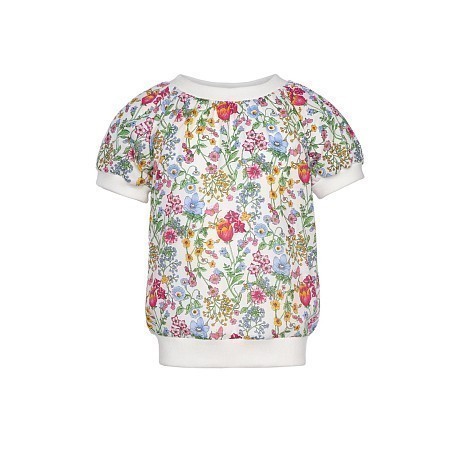 Футболка Chobi – это идеальный выбор для маленьких модниц! Изготовленная из 100% хлопка, она украшена нежным цветочным принтом с разноцветными цветами и зелеными листьями на белом фоне. Футболка с круглым вырезом и короткими рукавами создает комфорт и уют для вашего ребенка. На фотографии видна аккуратная белая окантовка по краю и мягкая текстура ткани. Качество от российского бренда Chobi и внимание к деталям делают эту футболку отличным выбором для вашего малыша!
