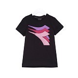 Футболка Diadora – это идеальный выбор для маленьких модниц! Изготовленная из 100% хлопка, она украшена ярким принтом в виде цветных линий на черном фоне. Нежная текстура ткани и удобная посадка делают эту футболку комфортной для вашего ребенка. На фотографии видна аккуратная отделка по краю и мягкая текстура ткани. Качество от бренда из Албании и внимание к деталям делают эту футболку отличным выбором для вашего малыша!