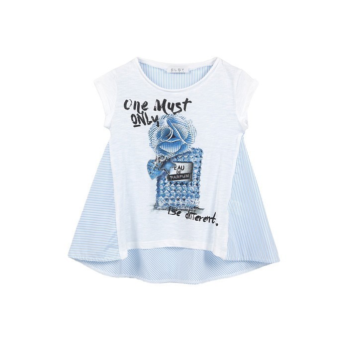 Футболка Elsy – это идеальный выбор для маленьких модниц! Изготовленная из 100% хлопка, она украшена очаровательным принтом парфюма и розы. Футболка с круглым вырезом и короткими рукавами идеально подходит для девочек. На фотографии видна аккуратная вышивка на передней части и мягкая текстура ткани. Качество от бренда из Италии и внимание к деталям делают эту футболку отличным выбором для вашего ребенка!