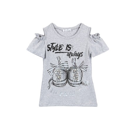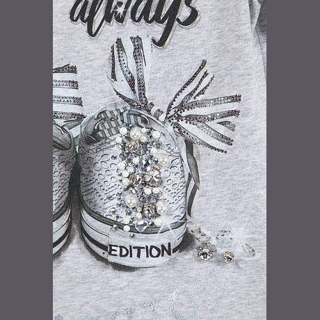 Футболка Elsy – это идеальный выбор для маленьких модниц! Изготовленная из 95% хлопка и 5% эластана, она украшена очаровательным принтом кед с надписью Style is always. Нежная ткань и эластичная резинка на плечах делают эту футболку комфортной и стильной. На фотографии видна аккуратная детализация кед с бусинами и надписью, а также мягкая текстура ткани. Качество от бренда из Италии и внимание к деталям делают эту футболку отличным выбором для вашего ребенка!
