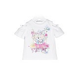 Футболка Elsy – это идеальный выбор для девочек! Изготовленная из 95% хлопка и 5% эластана, она украшена очаровательным принтом медведя на качелях. Мягкая белая основа с яркими розовыми цветами и акцентами создает игривое и в то же время уютное настроение. На фотографии видна аккуратная белая окантовка по краю и мягкое платье медведя с розовыми цветами. Качество от бренда из Италии и внимание к деталям делают эту футболку отличным выбором для вашего малышки!