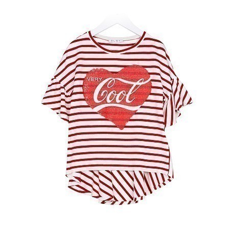 Футболка Elsy – это идеальный выбор для маленьких модниц! Изготовленная из комбинации вискозы, эластана, полиамида и полиэстера, она украшена красным принтом сердца с надписью Very Cool. Нежная вискоза и эластичный эластан обеспечивают комфорт и свободу движений. На фотографии видна аккуратная текстура ткани, мягкая воротничок и удобная посадка. Качество от итальянского бренда Elsy делает эту футболку отличным выбором для вашего ребенка!