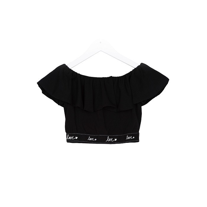 Черная футболка для девочек Elsy с оборками и надписью Love - доставка СДЭК по всей России - 4913/0T10/MORA-170/19-1