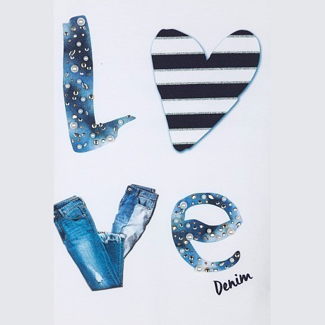 - 🎨 Дизайн: Love Denim, джинсовый принт, вышивка на буквах