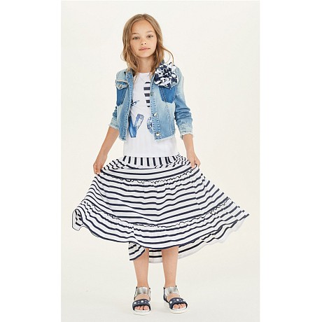 Футболка Elsy – это идеальный выбор для маленьких модниц! Изготовленная из 95% хлопка и 5% эластана, она украшена оригинальным принтом Love Denim с джинсовыми мотивами. Футболка с круглым вырезом и короткими рукавами идеально подойдет для девочек любого возраста. На фотографиях видна аккуратная вышивка на буквах и джинсовый принт, создавая неповторимый стиль. Качество от итальянского бренда и внимание к деталям делают эту футболку отличным выбором для вашего ребенка!