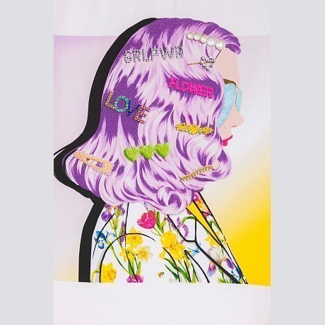 Футболка Elsy – это идеальный выбор для стильных девочек! Изготовленная из 95% хлопка и 5% эластана, она украшена ярким принтом с изображением девушки и цветов. Футболка идеально подходит для детей любого возраста, так как ее можно носить как дома, так и на прогулке. На фотографии видна аккуратная вышивка и мягкая текстура ткани. Качество от бренда из Италии и внимание к деталям делают эту футболку отличным выбором для вашего ребенка!