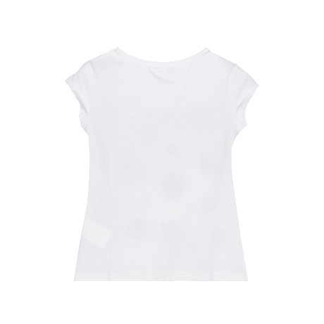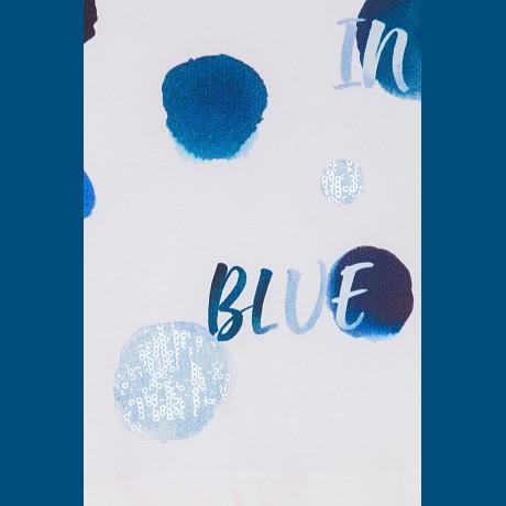 Футболка Elsy – это идеальный выбор для девочек! Изготовленная из 95% хлопка и 5% эластана, она украшена очаровательным принтом Forever in Blue с акварельными пятнами. Нежная белая основа с яркими синими и голубыми пятнами создает игривое и вдохновляющее настроение. На фотографии видна аккуратная белая окантовка по краю и мягкая текстура ткани. Качество от бренда из Италии и внимание к деталям делают эту футболку отличным выбором для вашего ребенка!