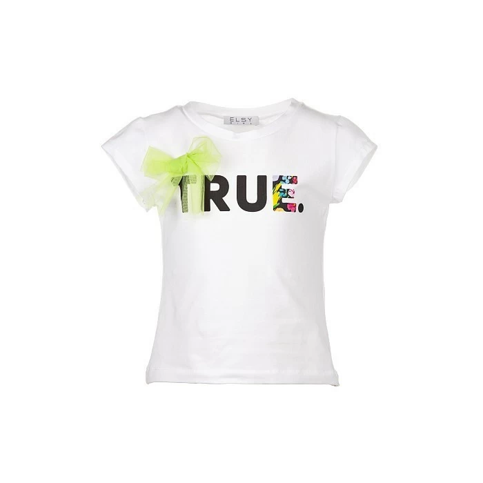 Футболка Elsy – это идеальный выбор для маленьких модниц! Изготовленная из 95% хлопка и 5% эластана, она дополнена ярким принтом True и красивым бантом. Футболка идеально подойдет для девочек любого возраста, так как она универсальна и стильно смотрится. На фотографии видна яркая надпись True с контрастным бантом из тюля, что делает эту футболку еще более привлекательной. Качество от итальянского бренда Elsy и внимание к деталям делают эту футболку отличным выбором для вашего ребенка!
