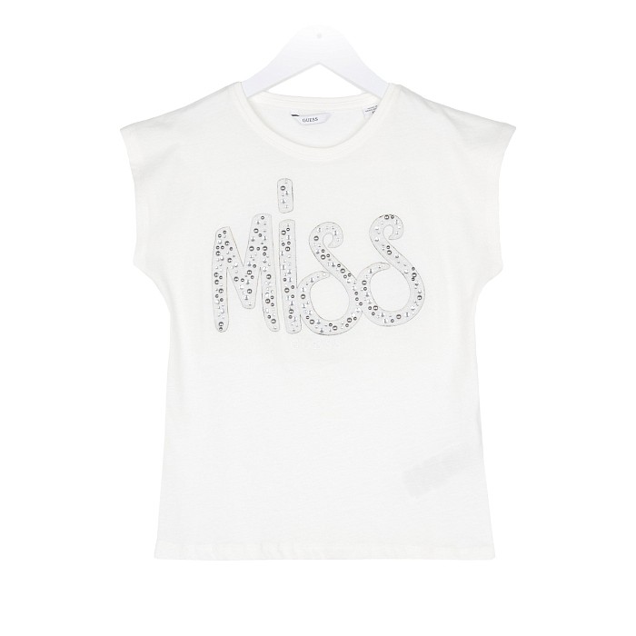 Футболка Guess для девочек – это идеальный выбор для вашего маленькой модницы! Изготовленная из 100% хлопка, она украшена блестящим надписью "Miss" с блестками, что делает её яркой и привлекательной. Футболка Guess – премиум качество из Бангладеш, идеально подходит для девочек любого возраста. На фотографии видна блестящая надпись "Miss" с блестками, мягкая текстура ткани и округлый вырез горловины. Качество от бренда Guess и внимание к деталям делают эту футболку отличным выбором для вашего ребенка!