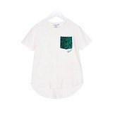 Футболка Guess – это идеальный выбор для стильных девочек! Изготовленная из комбинации вискозы и эластана, она украшена зеленым принтом змейки и логотипом Guess. Нежная белая основа с ярким зеленым принтом создает модный и в то же время удобный наряд. На фотографии видна аккуратная зеленая контрастная окантовка по краю кармана и мягкая текстура ткани. Качество от бренда из США и внимание к деталям делают эту футболку отличным выбором для вашего ребенка!