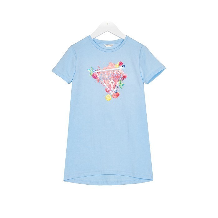 Футболка Guess – это идеальный выбор для девочек! Изготовленная из 95% хлопка и 5% других волокон, она украшена ярким принтом с фруктами и ягодами. На футболке виден треугольник с разноцветными фруктами, ягодами и блестками. Нежная текстура ткани и удобная посадка делают эту футболку отличным выбором для вашего ребенка!