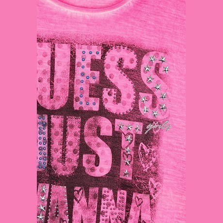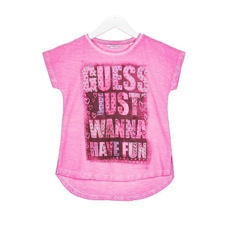 Футболка Guess – это идеальный выбор для маленькой модницы! Изготовленная из 100% хлопка, она украшена ярким принтом с надписью "Guess Just Wanna Have Fun" и сердечками. Нежная розовая основа с ярким принтом создает яркое и веселое настроение. На фотографии видна аккуратная вышивка и мягкая текстура ткани. Качество от бренда из США и внимание к деталям делают эту футболку отличным выбором для вашего ребенка!