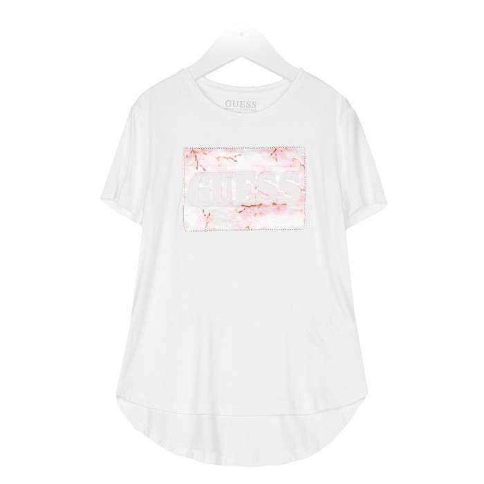Футболка Guess – это идеальный выбор для стильных девочек! Изготовленная из 95% вискозы и 5% эластана, она украшена крупным принтом Guess, выполненным в стиле акварели. Футболка с круглым вырезом и короткими рукавами создает комфорт и стиль. На фотографиях видна аккуратная вышивка логотипа Guess на передней части и мягкая текстура ткани. Качество от бренда из США и внимание к деталям делают эту футболку отличным выбором для вашего ребенка!