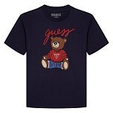 Футболка Guess – это идеальный выбор для девочек 7 лет! Изготовленная из 100% хлопка, она украшена очаровательным принтом медведя в красной кофточке и синих штанишках. Нежная темно-синяя основа с яркими деталями создает уютное и стильное настроение. На фотографиях видна аккуратная вышивка медведя и надпись Guess, а также мягкая текстура ткани. Качество от бренда из США и внимание к деталям делают эту футболку отличным выбором для вашего ребенка!
