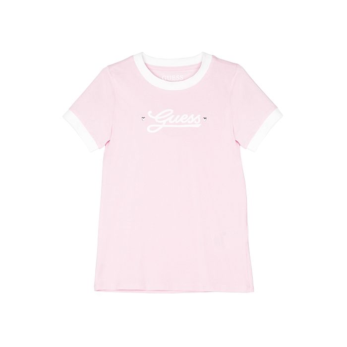 Футболка для девочек Guess бледно-розового цвета – это идеальный выбор для подростков! Изготовлена из 95% хлопка и 5% эластана, она обеспечивает комфорт и мягкость. Логотип Guess на груди придает модели оригинальный и модный вид. Футболка идеально подходит для девочек ростом 164 см и возрастом 14 лет. На фотографиях видна аккуратная отделка краев рукавов и удобная посадка. Качество от американского бренда Guess делает эту футболку отличным выбором для вашего подростка!