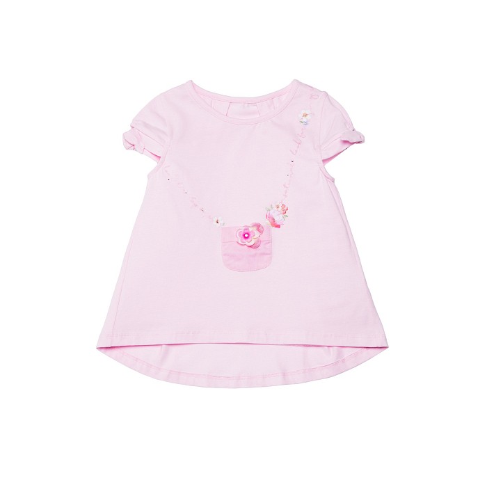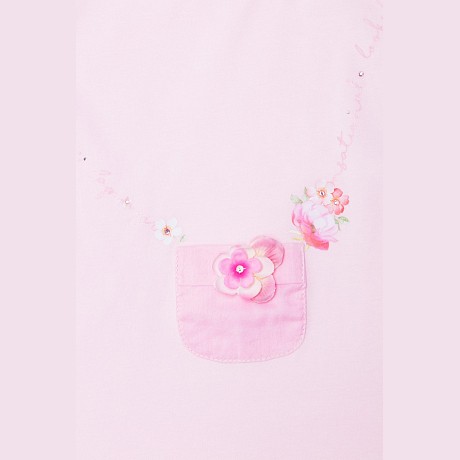Футболка для девочек Lapin House – это идеальный выбор для маленьких модниц! Изготовленная из 94% хлопка и 6% эластана, она украшена очаровательным цветочным принтом и карманом. Нежно-розовая основа с яркими цветами и бантами создает нежное и в то же время яркое настроение. На фотографии видна аккуратная отделка по краю и мягкая текстура ткани. Качество от бренда из Греции и внимание к деталям делают эту футболку отличным выбором для вашего ребенка!