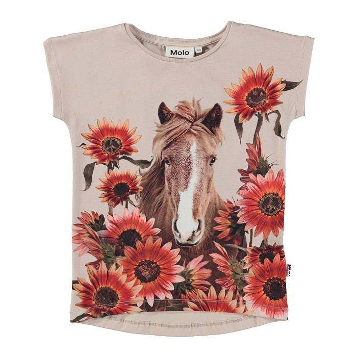 Футболка для девочек Molo с принтом лошади и подсолнухов