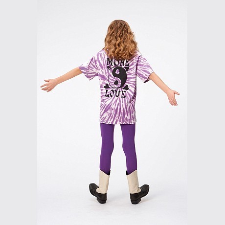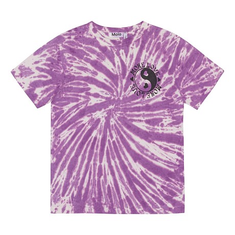 Футболка Molo для девочек – это идеальный выбор для вашего ребенка! Изготовленная из 100% натурального хлопка, она украшена стильным принтом More Love. Футболка выполнена вручную с помощью техники тай-дай, что придает ей уникальный и неповторимый дизайн. На футболке видна надпись More Love и символ души в центре, окруженный сердечками. Нежная ткань и стильный принт делают эту футболку отличным выбором для вашего ребенка!