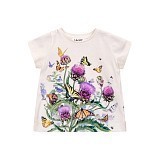 Футболка Molo – это идеальный выбор для маленьких модниц! Изготовленная из 95% натурального хлопка и 5% эластана, она украшена очаровательным принтом с бабочками и цветами. На футболке изображены разноцветные бабочки, летящие над яркими цветами и зелеными листьями. Нежная белая основа с яркими цветными акцентами создает легкое и в то же время стильное настроение. На фотографиях видна аккуратная белая окантовка по краю и мягкая текстура ткани. Качество от бренда из Дании и внимание к деталям делают эту футболку отличным выбором для вашего ребенка!