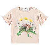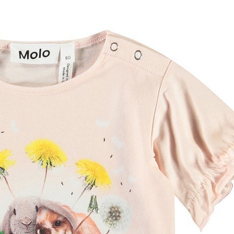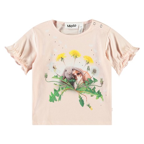 Футболка для девочек Molo бледно-розового цвета с принтом зайцев и одуванчиков
