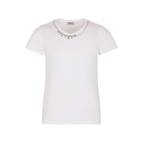 Белая футболка для девочек Pinko Up с кристаллами
