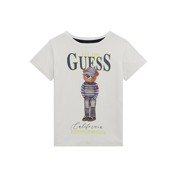 - 🎨 Дизайн: медведь в кепке, надпись Guess, белая окантовка