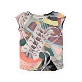 Футболка Molo – это идеальный выбор для стильных девочек! Изготовленная из 95% хлопка и 5% эластана, она украшена ярким принтом кроссовок в разноцветных тонах. Кроссовки изображены на белом фоне, с разноцветными шнурками и деталями. Нежная ткань и удобная посадка делают эту футболку отличным выбором для вашего ребенка!