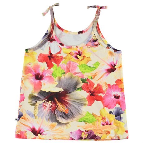 Топ для девочек Molo – это идеальный выбор для теплых дней! Изготовленный из 95% хлопка и 5% эластана, он украшен ярким цветочным принтом с розовыми, желтыми и фиолетовыми цветами на белом фоне. Нежная ткань с красивыми цветами создает легкую и стильную одежду для девочек. На фотографиях видна аккуратная резинка на плечах и мягкая текстура ткани. Качество от бренда из Индии и внимание к деталям делают этот топ отличным выбором для вашего ребенка!
