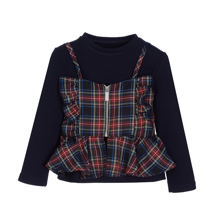 Блуза Lapin House – это идеальный выбор для стильных девочек! Изготовлена из джемпера из 88% вискозы, 10% полиэстера и 2% эластана, а также топа из 50% хлопка и 50% полиэстера с подкладкой из 100% хлопка. Классический джемпер сочетается с топом, украшенным ярким клетчатым принтом и оборками. Клетка в красно-черном цвете с синими и желтыми полосками создает стильный и элегантный образ. На фотографии видна аккуратная застежка на молнии и мягкая текстура ткани. Качество от бренда из Греции и внимание к деталям делают эту блузу отличным выбором для вашего ребенка!