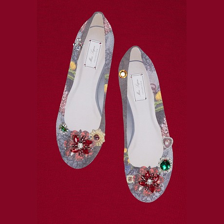 - 🎨 Дизайн: принт туфель с цветочным узором и блестками