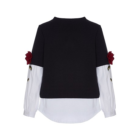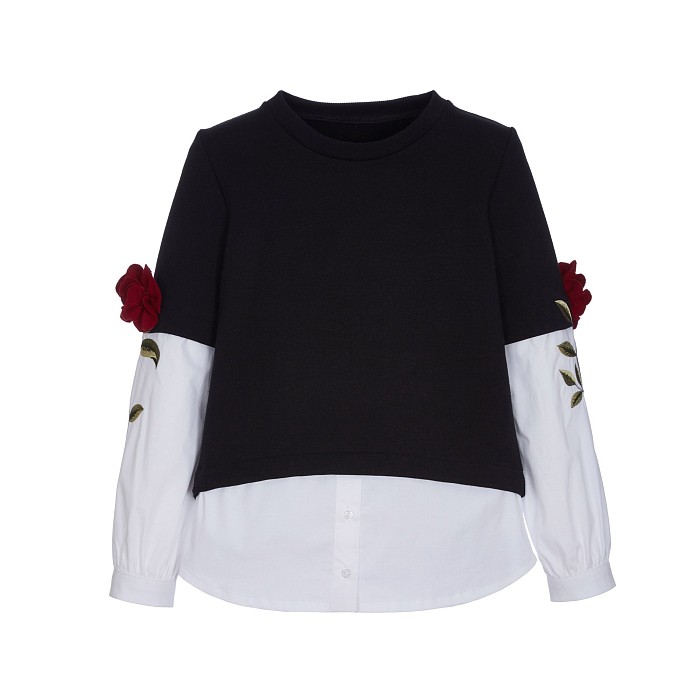 Блуза тр. для девочки Lapin House – это идеальный выбор для стильных и модных девочек! Изготовленная из 97% хлопка и 3% эластана, она украшена изысканными цветочными аппликациями на рукавах. Классический черный цвет с белыми рукавами и красными цветами создает неповторимый стиль и комфорт. На фотографиях видны аккуратные цветочные аппликации на рукавах, мягкая текстура ткани и удобная посадка. Качество от бренда из Греции и внимание к деталям делают эту блузу отличным выбором для вашего ребенка!