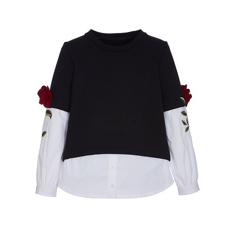 Блуза тр. для девочки Lapin House с цветочным принтом на рукавах - доставка СДЭК по всей России - 92E2474/19-02