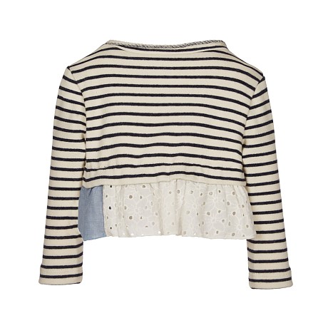 Блуза тр. для девочки Lapin House – это идеальный выбор для стильных девочек! Изготовленная из 85% хлопка, 13% тактеля и 2% лена, она сочетает в себе комфорт и элегантность. Блуза украшена оригинальным принтом и кружевом, что делает её идеальным дополнением к гардеробу. На фотографии видна аккуратная кружевная вставка в нижней части блузы и элегантная надпись "Lapin House" на спинке. Качество от бренда из Греции и внимание к деталям делают эту блузу отличным выбором для вашего ребенка!