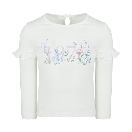 Блузка трикотажная для девочек с принтом зайцев и цветов