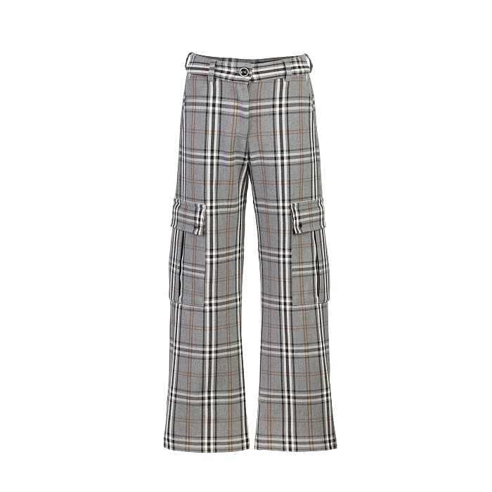 Текстильные брюки серого цвета с принтом клетки для девочек