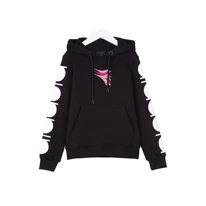 Джемпер Diadora – это идеальный выбор для маленьких модниц! Изготовленный из 100% хлопка, он украшен ярким принтом на рукавах и груди. Контрастные белые круги на черном фоне создают стильный и современный образ. Джемпер с удобной посадкой и эластичными манжетами подойдет для девочек любого возраста. На фотографии видна аккуратная отделка по краю и мягкая текстура ткани. Качество от бренда из Албании и внимание к деталям делают этот джемпер отличным выбором для вашего ребенка!
