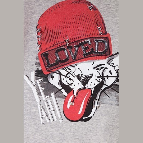 - 🎨 Дизайн: принт кота с надписью Loved, красные полосы на рукавах