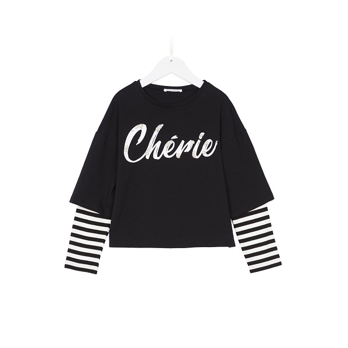 - 🎨 Дизайн: принт Chérie, контрастные рукава в полоску