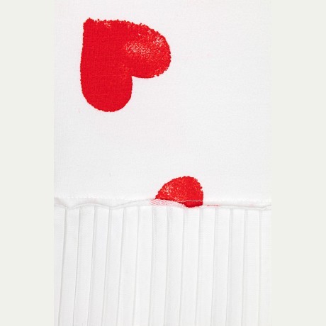 - 🎨 Дизайн: красные сердечки, белый фон, эластичная резинка по низу и рукавам